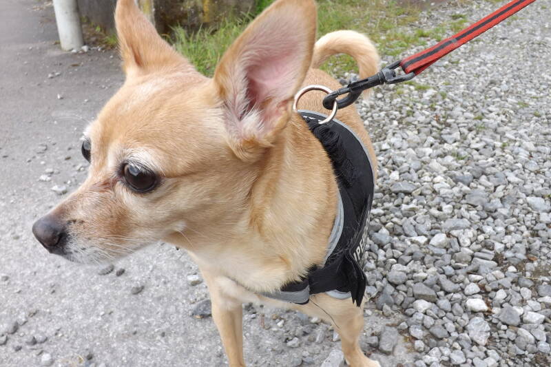 Et enfin... Quoi de plus beau qu'un p'tit toutou se baladant dans la nature ? Voici Chipette, mon p'tit pinsher adoré, qui a grandi auprès de Poulette mais qui mainenant a prit toute la place dans la maison (cliques sur les photos pour les voir en grand) :