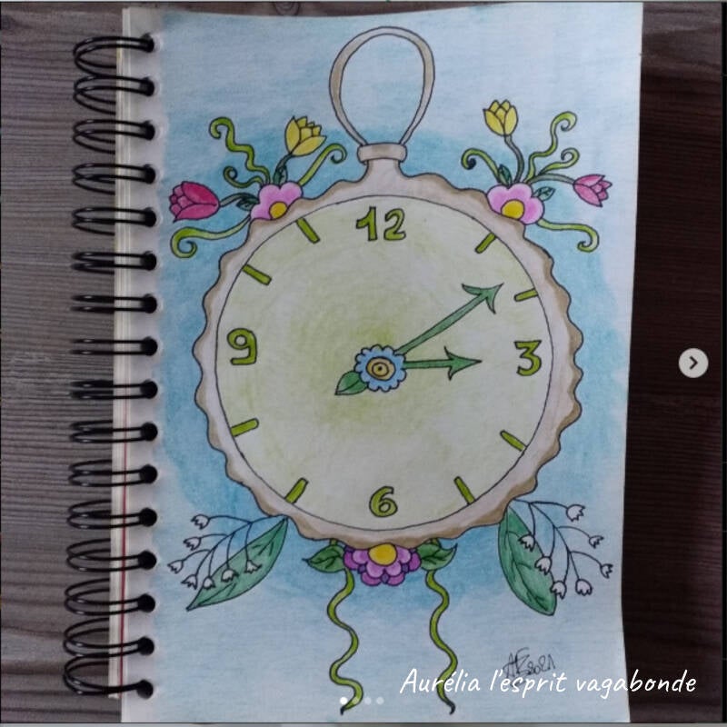 Il y a aussi ce dessin sur l'heure que j'ai fait en 2021, et tu remarqueras que c'est encore inspiré de l'univers d'Alice au pays des merveilles :